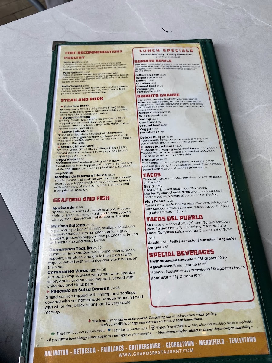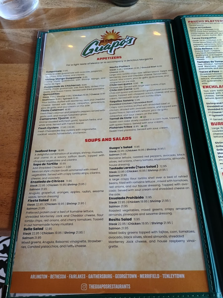 Welcome to Guapo's Restaurant, a beloved establishment located on the scenic Georgetown waterfront in Washington, DC. With over 20 years of satisfying palates, Guapo's has crafted a reputation for delivering authentic Mexican cuisine that rivals any competitor. Diners rave about the highlights that include robust burritos, zesty tacos, and mouthwatering quesadillas—each bursting with fresh ingredients and vibrant flavors.